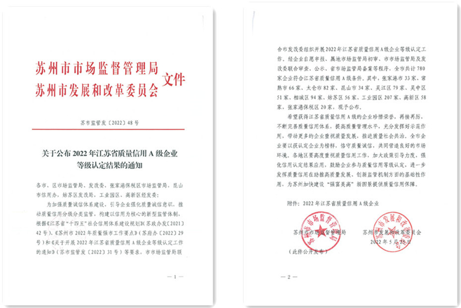 為了加強質量誠信體系建設,引導企業強化質量誠信意識,推動質量信用分級分類監管,構建以信用為核心的新型監管體制。近日,蘇州市市場監管局聯合蘇州市發改委發布了《2022江蘇省質量信用A級企業等級認定結果》,蘇州華碧微科檢測技術有限公司成功上榜,并獲評“江蘇省質量信用等級A級企業”。